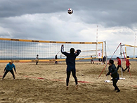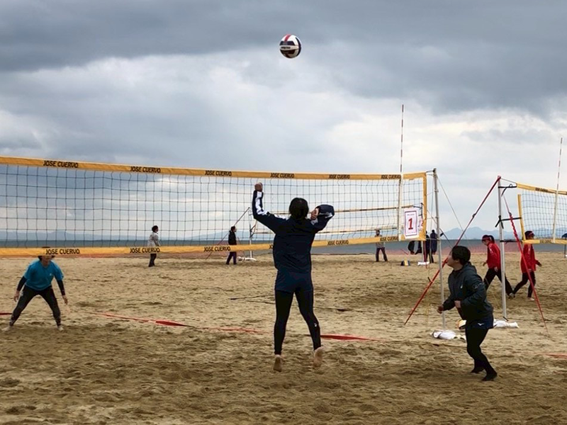 普段取り組んでいるインドアとは全く別物のバレーボールで、砂浜の上で思うように動くことができないだけでなく、風でボールが動くことにも苦労していました。そのような環境下だからこそいつも以上にコミュニケーションをとり、工夫する姿が見られました。