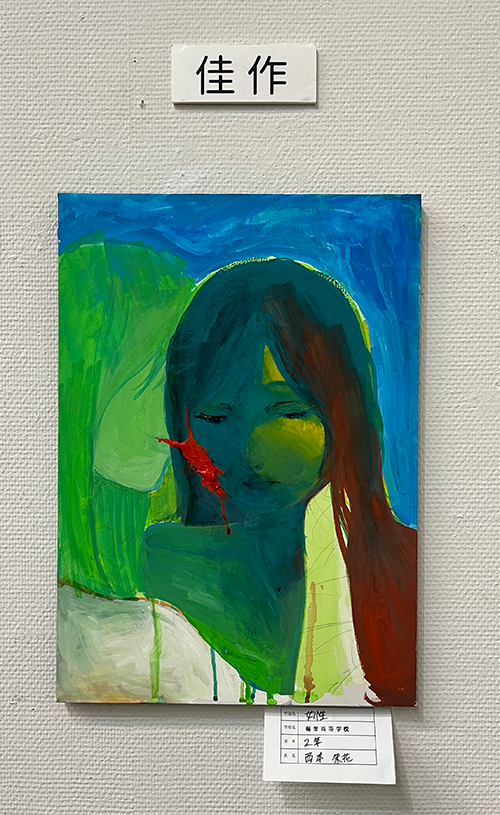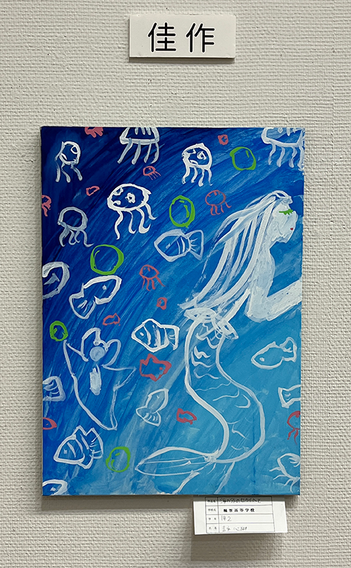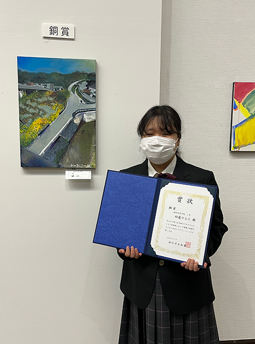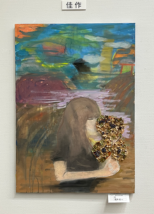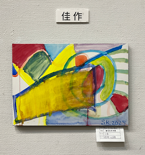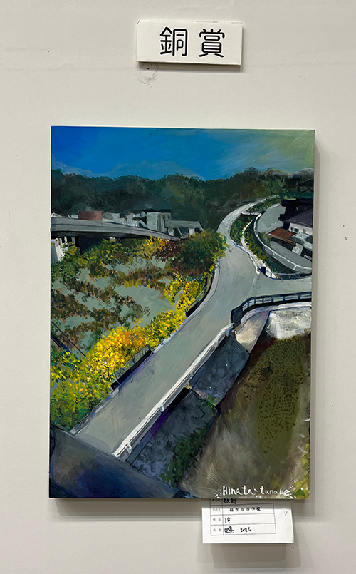 | 1年生 | 田邉 ひなた さん 『駅前』銅賞 佐村 心羽音 さん 『明るい生き物の集まり』佳作 濱﨑 暖心 さん 『ドライフラワー』佳作 吉永 心瑚 さん 『海の外のセカイへと』佳作 |
