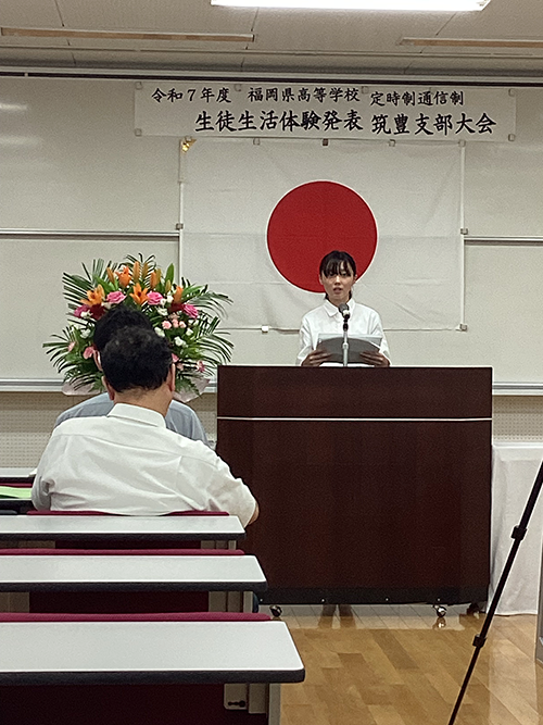 本校の単位制からは、3年相当生の藤井優花さんが「夢を追いかけて」という題で発表し、みごと筑豊地区の代表として県大会出場を果たしました。県大会は9月27日(土)にコミセン和白で行われます。