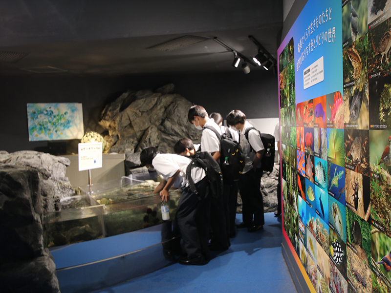 行き先はマリンワールド海の中道、天候にも恵まれ、生徒たちはそれぞれ自由に館内を見学し、水族館を満喫しました。