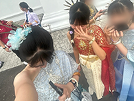 アジア交流事業とは福岡県の私立高校生の中から代表して夏にアジアの国を訪れ、現地の学生と交流・ホームステイを経験し、秋にアジアの学生が日本に来て日本の学生と交流・ホームステイを経験する事業です。今年度は本校から3年1組の香月 紅瑠美さん(伊田中学校出身)と御木 せいら(川崎中学校出身)さんが参加しました。事前研修を経て、8月2日~8月9日にタイ王国のバンコクに派遣されました。バンコク滞在中には現地の世界遺産や博物館、孤児院、日本大使館、日系企業などに訪れつつ、タイ王国の学生との交流や学校体験、ホームステイを経験することで、タイ王国の歴史・文化・日本との関わりを肌で感じられる研修となりました。また、日本の学生も日本文化を披露するなどの相互理解を深める機会もありました。