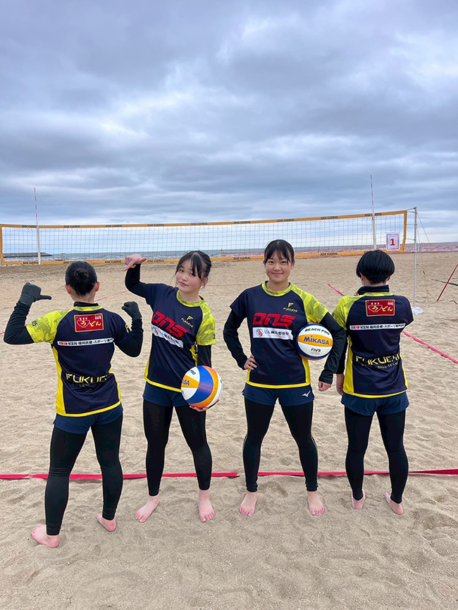 普段取り組んでいるインドアとは全く別物のバレーボールで、砂浜の上で思うように動くことができないだけでなく、風でボールが動くことにも苦労していました。そのような環境下だからこそいつも以上にコミュニケーションをとり、工夫する姿が見られました。