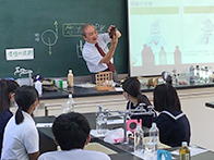 理科の授業では、エタノールやゆで卵、磁石等さまざまな道具を使って、楽しく実験を行いました。驚きや発見が随所に感じられる授業で、実験がうまくいった際には拍手が湧き起こり、「楽しかった」「理科にとっても興味が出てきた」などといった感想をもらいました。